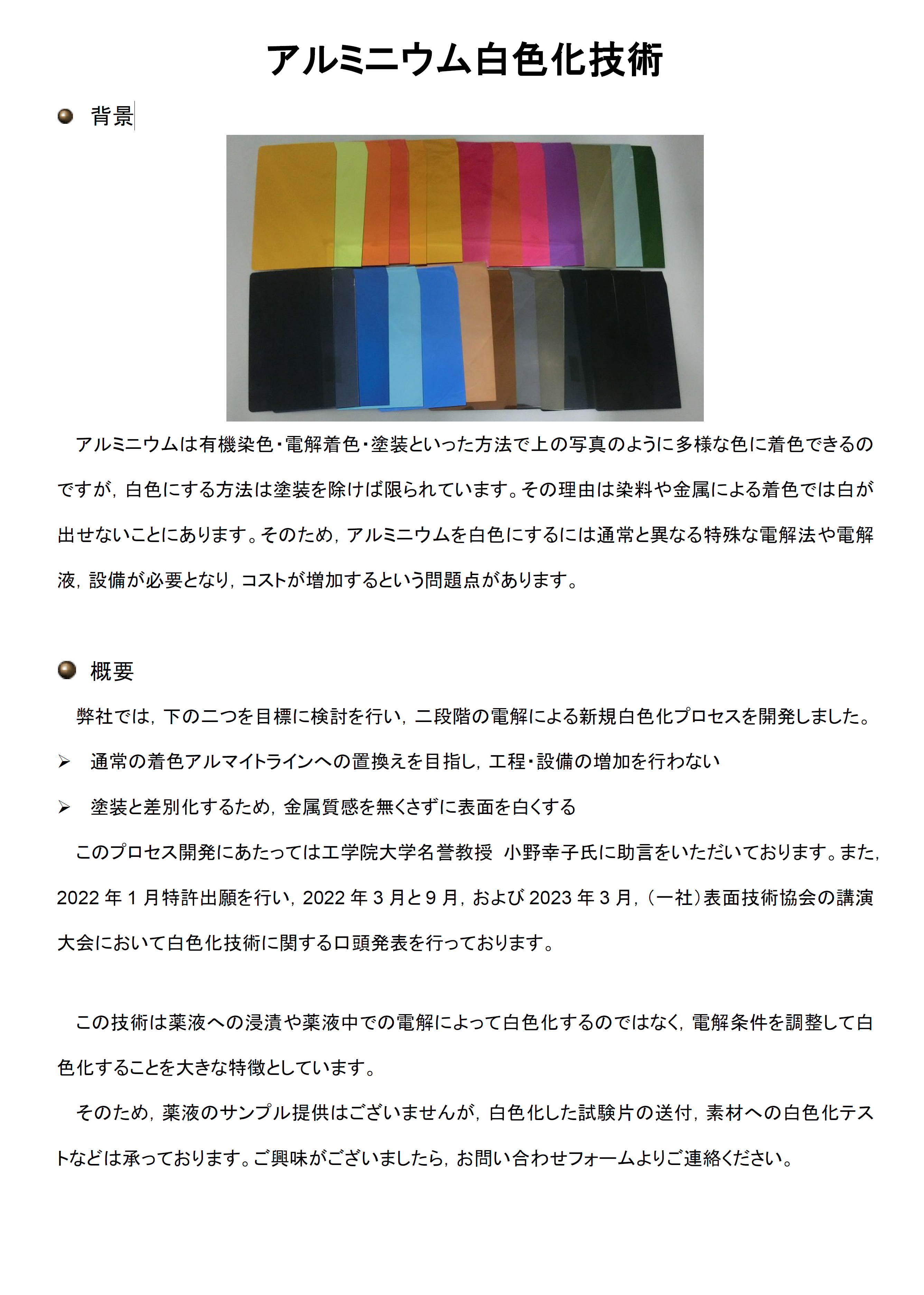 アルミニウム白色化技術
